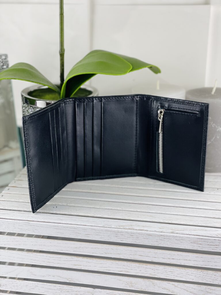 Портмоне Mika-10p черная плетенка из натуральной кожи с отделениями для карт и монетницей.